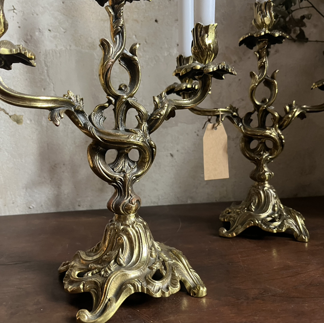 Paire de chandeliers en métal doré